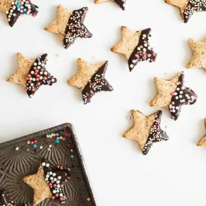 Simpele kerstkoekjes met discodip – bak samen met de kids sterren van koek! Zullen we de kerstboom al ophalen? Deze makkelijke koekjes kan iedereen maken. Een super simpel en lekker bakrecept voor kerstkoekjes met chocolade. Dit is een makkelijk recept voor crunchy koekjes die je zelf kunt maken. Zelfgemaakte kerstkoekjes met chocolade (en discodip) zijn gewoon het allerlekkerst!